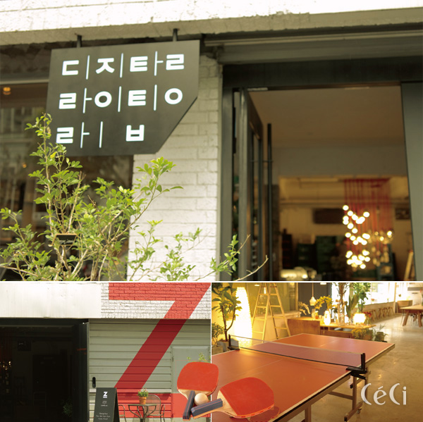 각종 패션 행사로 성수동을 뜨겁게 달군 핫 플레이스 '대림창고'. 그 옆에 라이팅 갤러리 카페 '자그마치'가 문을 열었다. 다양한 조명의 빛과 오브제를 러프하게 매치한 인테리어가 성수동다워 마음에 든다. 이태원 글래머러스 펭귄에서 공수한 케이크를 맛보지 않으면 서운하다.