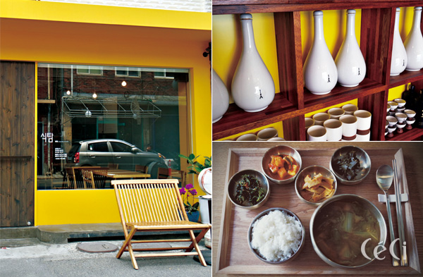 음식을 탐하게 하는 곳. 소박한 가정식 메뉴를 정성껏 요리한다. 점심 메뉴는 백반, 고기백반, 생선백반 3가지. 놋쇠 그릇에 담긴 밥과 찬, 금색 수저가 나무 반상에 올라 정갈하게 나온다. 귀한 손님으로 대접받는 기분이 든다.